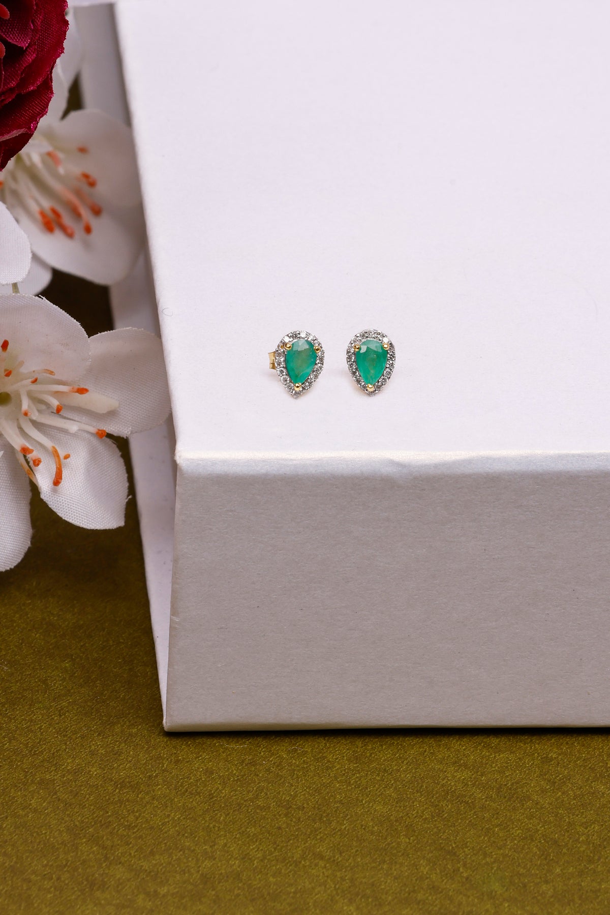 Natural Emerald and Natural Diamonds Earrings made in 14K GoldPush and Pull Ear TopsHallmarked and lab tested stonesStone wt-0.87 cent, Diamonds wt-0.18 cent, Gold wt-1.343 gm, Gross wt-1.553 gmDiamonds Clarity-SI, Color-H/I