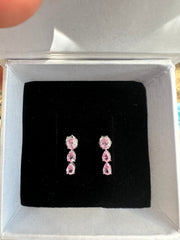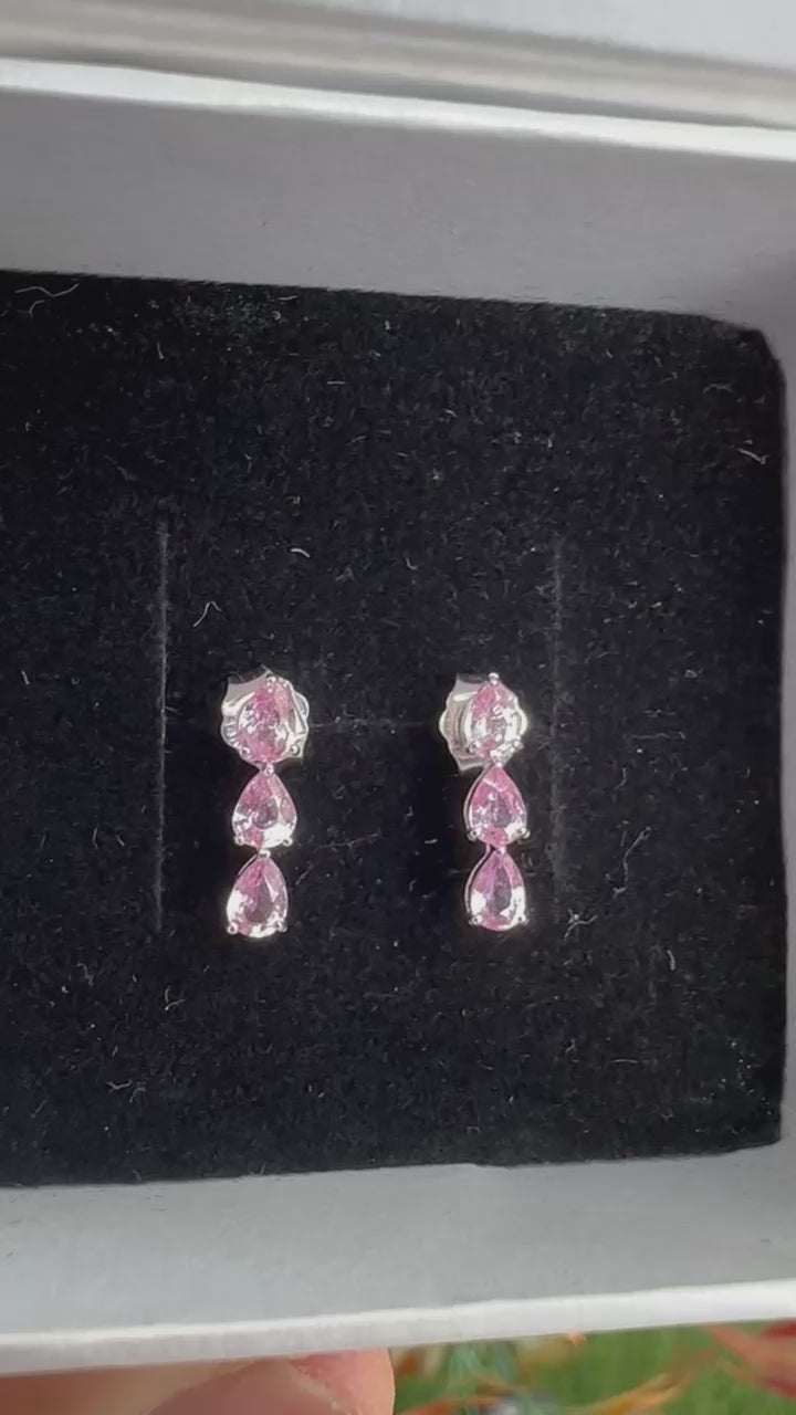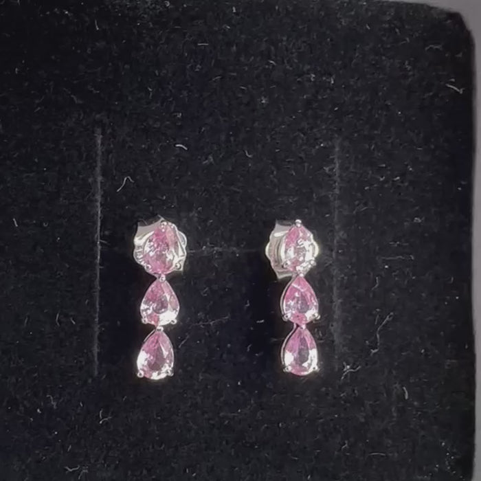 Inform when this item available Pear Cut Pink Sapphire 14K Gold Earrings - Three Stone Design