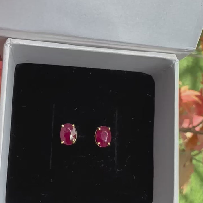 14K Gold Ruby Oval Stud Earrings: Luxury Gemstone Earstuds