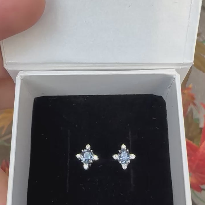 Inform when this item available 14K Gold Blue Sapphire & Diamond Earrings: Luxury Star Studs