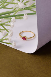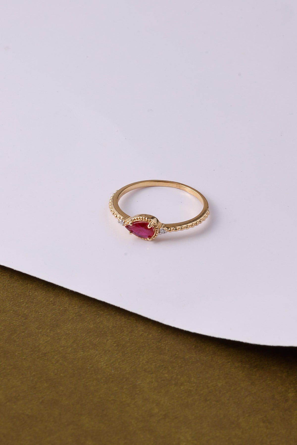 Materialists inspired 14K Gold Ruby and Diamond Ring: Dainty Eternity Design