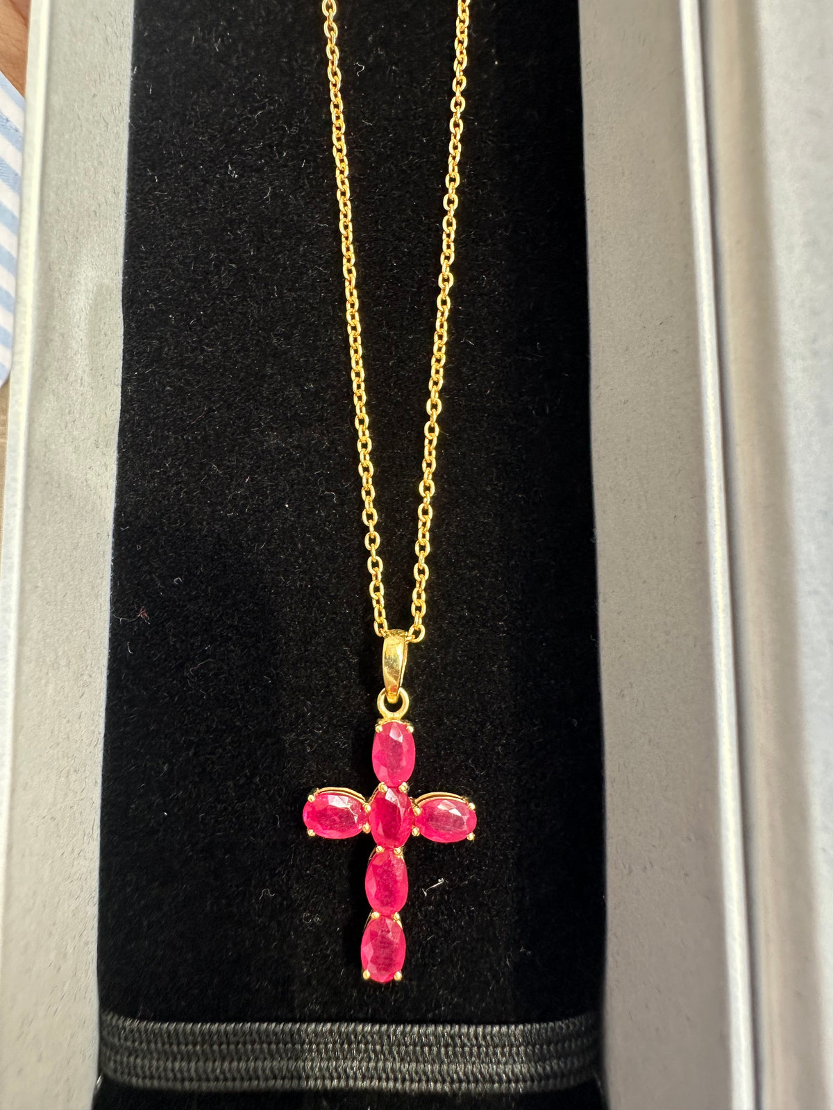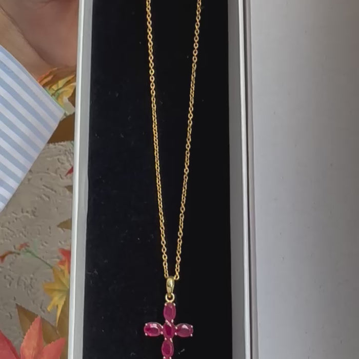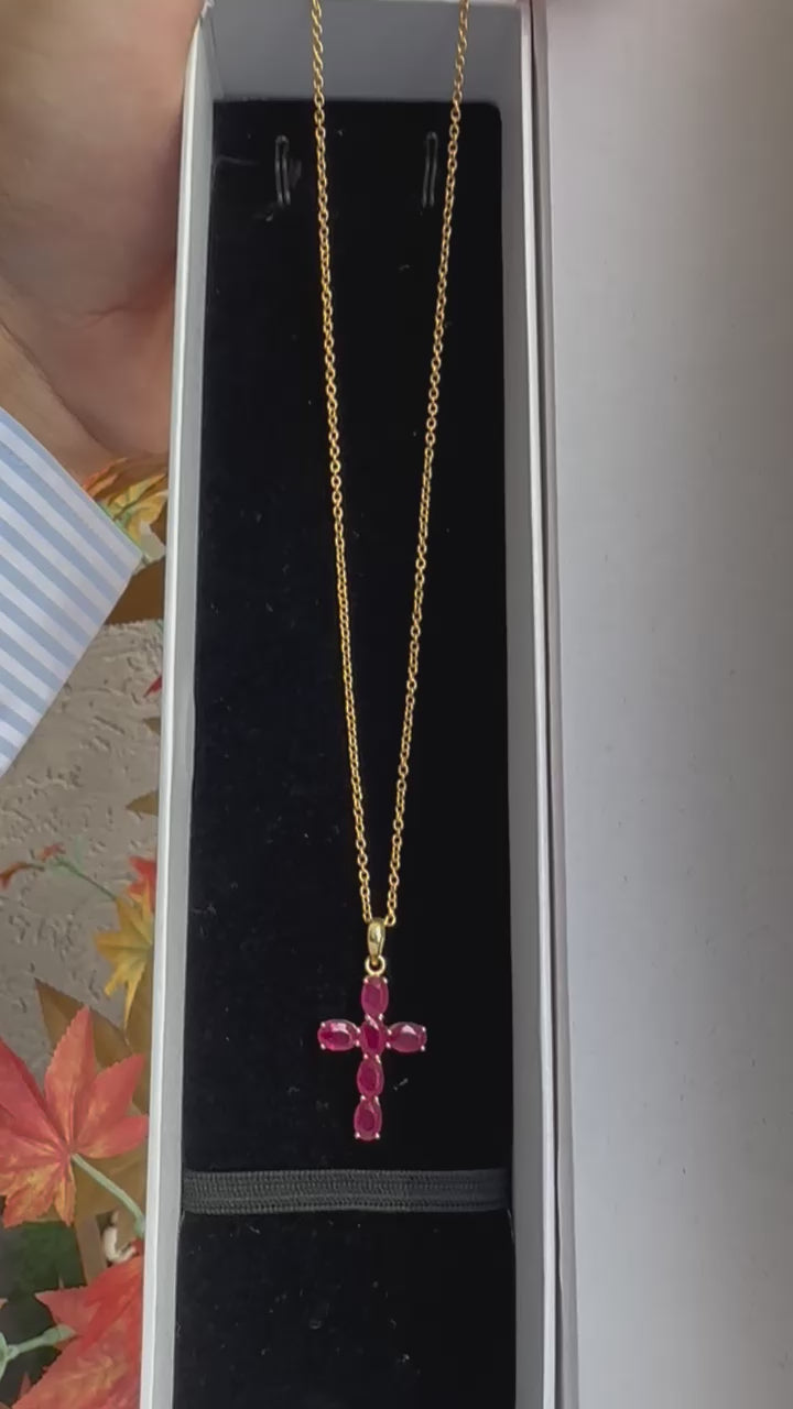 Inform when this item available Silver Cross Pendant with Natural Ruby: Minimalist Design