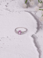 14K Gold Pink Sapphire Ring: Diamond Accent, Dainty Design for Her - 6 / Rose gold