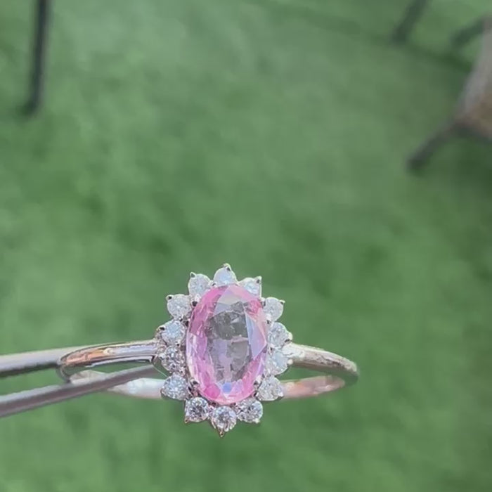 Inform when this item available Sunflower 14K Gold Pink Sapphire Ring: Diamond Accent, Dainty Design for Her