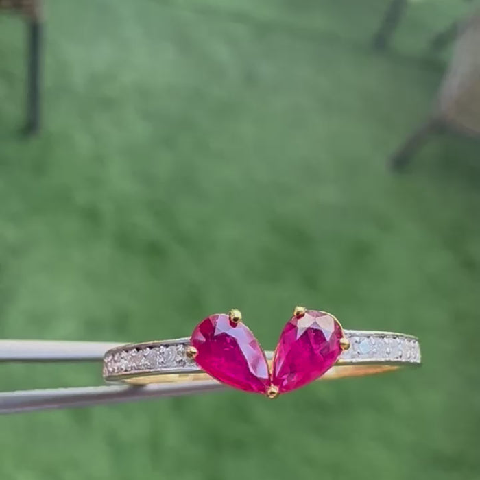 Natural Ruby and Natural Diamonds ring made in 14K goldHallmarked and lab tested stonesStone wt-0.44 cent, Diamond wt-0.14 cent, gold wt-0.976 gm, gross wt-1.092 gmDiamond clarity-SI, Color-H/I