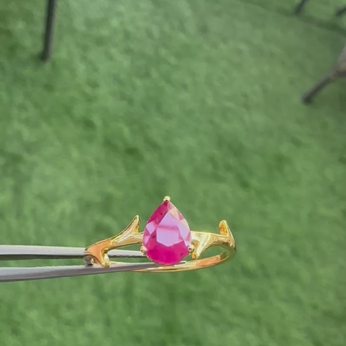 Inform when this item available 14K Gold Natural Ruby Pear Ring: Dainty Eternity Unique Designer Ring
