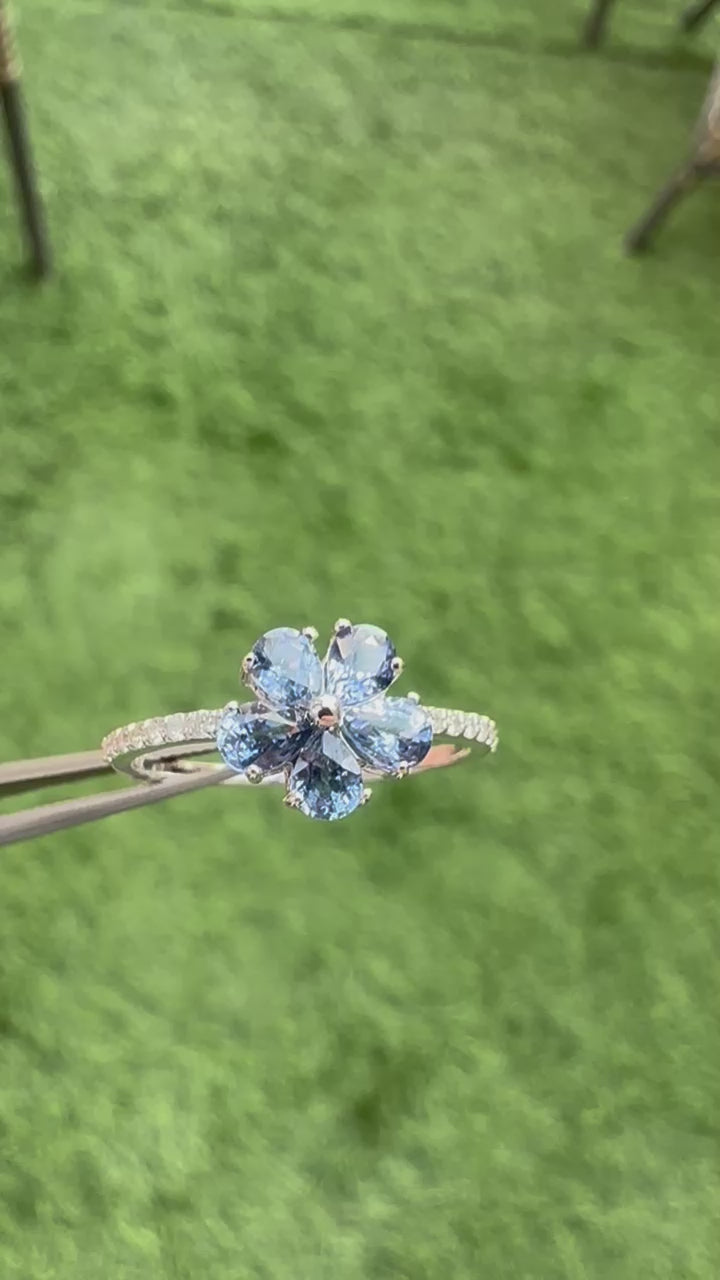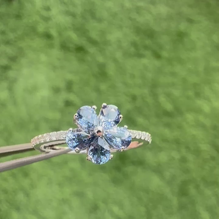 Inform when this item available Flower 14K Gold Minimalist Ring Pear Blue Sapphire & Diamond Accent
