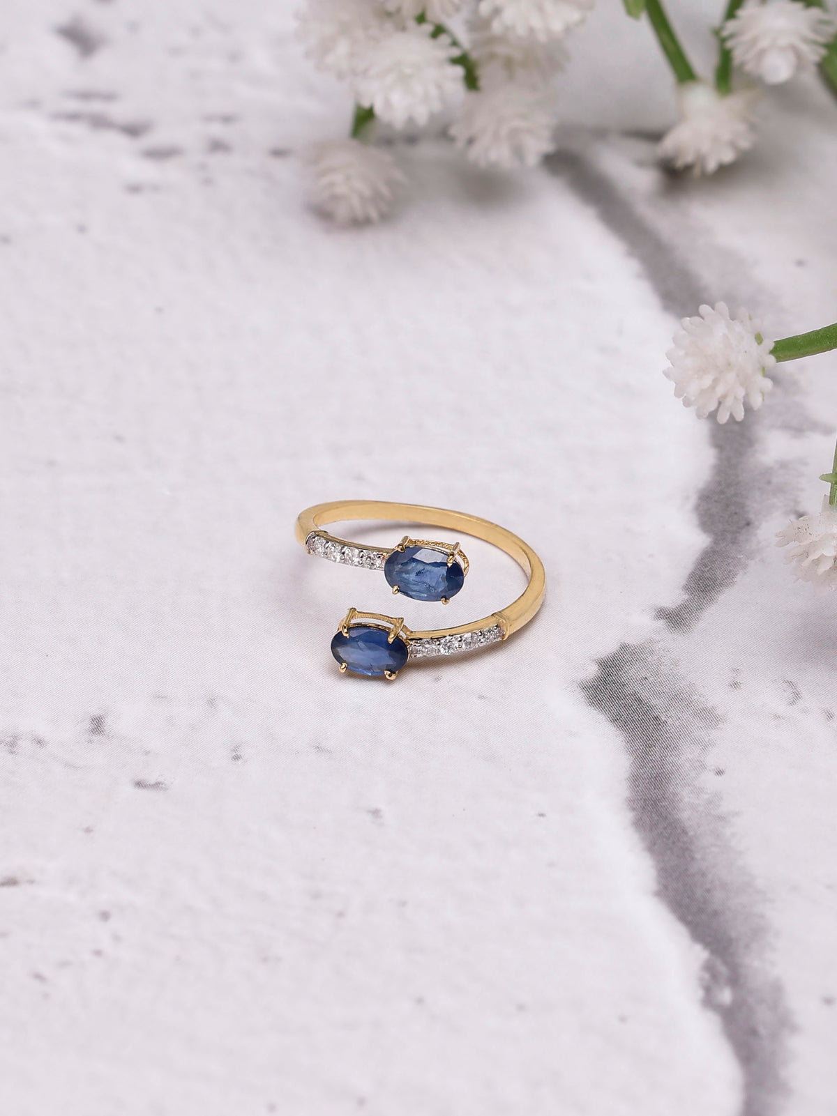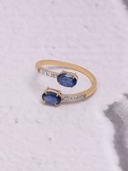 Inform when this item available 14K Gold Huggie Ring: Oval Blue Sapphire & Diamond Accent